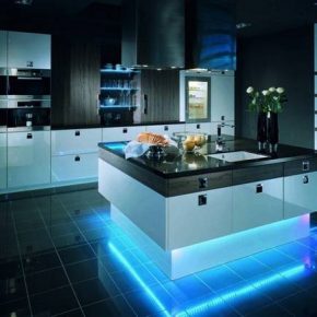 Contemporary black and blue kitchen