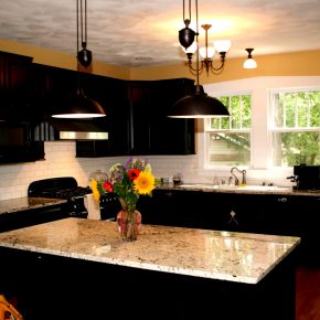 Industrial modern kitchen design with black cabinets