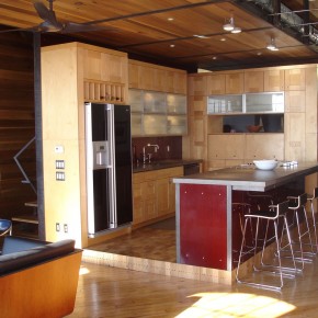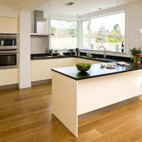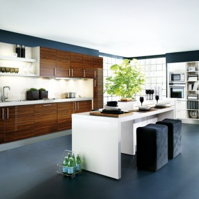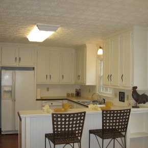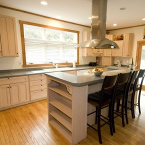 Cheap Interior Design Spacious Open Kitchen Idea With Laminate Wood Cabinets And White Counter tops