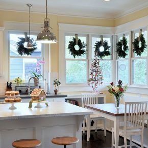 Decorating the kitchen for Christmas can be lots of fun. There’s many color themes you can use for the holidays. You can use the traditional red and green colors or you can mix them up and use purple or other colors in your kitchen. Your kitchen doesn’t have to sync with the rest of the house. It can stand alone as a different room. However, if you want it too sync with the rest of the house you should plan to decorate it ahead of time. You can put mini Christmas trees on the kitchen table, hang wreaths up on the curtains and do so much more with the Christmas theme. Here are 20 Christmas kitchen ideas to help get you in the mood for Christmas.