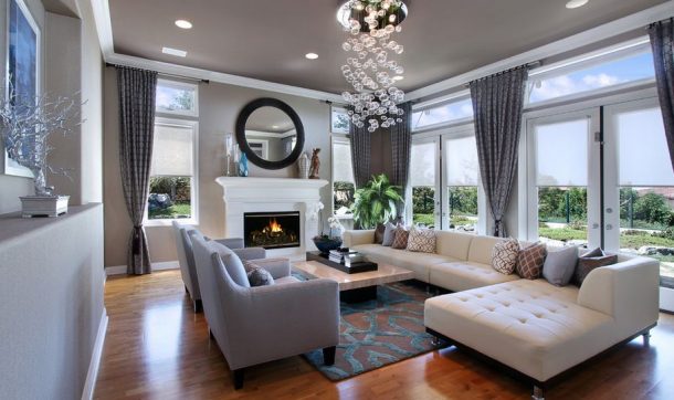 Luxury-Interior-Design-Ideas-Living-Room-With-Fireplace-Under-Round-Wall-Mirror-And-Elegant-Curtains-On-Sliding-Glass-Door by kari on October 22, 2018 in 0