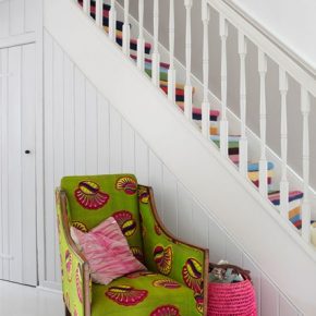 Rainbow stairs and colorful chair in small area
