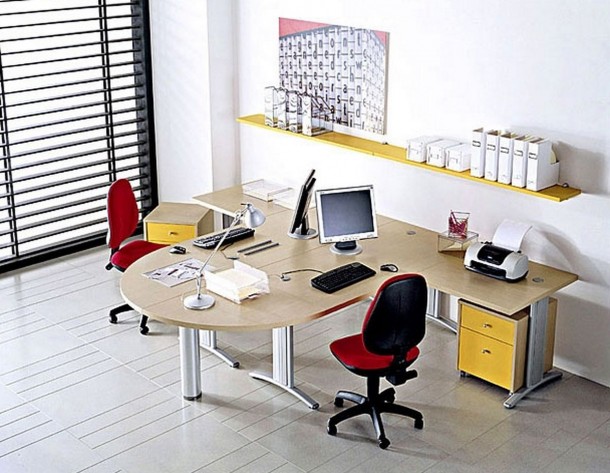 office-workspace-cheerful-small-home-office-decoration-using-modern-l-shape-oak-wood-yellow-computer-desk-including-red-fabric-office-swivel-chair-and-mount-wall-yellow-shelf-in-home-office-lov