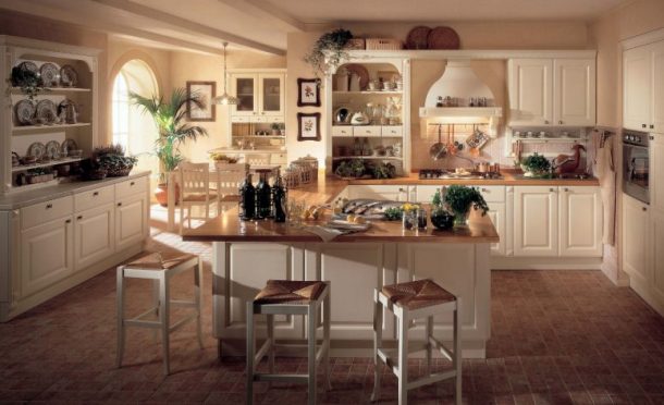 modern-classic-kitchen-design-modern-grohe-concetto-single-handle-single-hole-bathroom-shapely-white-dining-chairs-cherry-wood-kitchen-cabinet-red-molded-barstools-wood-paneled-wall-775×473