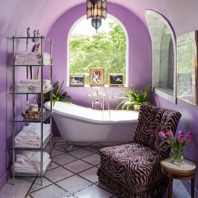 If you’re a lavender fan then you can easily turn your bathroom into a beautiful lavender bathroom. Lavender bathrooms tend to be very relaxing. One thing to keep in mind is that there’s a lot of shades of lavender. You can have a deep lavender or more of a pastel color. How your bathroom ends up looking will be depending on the shade of lavender you use. You can also use different shades of light to help with complimenting the lavender. Scents in a lavender bathroom can also help make it even more special. Just be sure the bathroom is well ventilated if you have scents or it can create problems. Towels is another way to make the bathroom stand out. You can get a mix of colors that can easily blend with lavender. Here are 20 Lavender Bathroom Ideas.