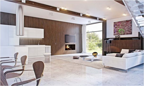 square-brown-high-gloss-wood-coffe-table-white-minimalist-house-round-glass-globe-shaped-chandelier-the-best-interior-design-wooden-laminate-floor-cool-white-fabric-sectional-sofa