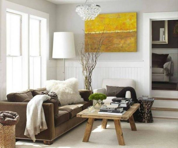 small-living-room-ideas-with-sofa-againts-the-windows-and-rustic-coffee-table-and-small-crystal-chandelier-and-wall-art-in-neutral-wall-with-wainscoting by kari on July 17, 2017 in 0