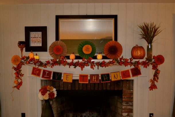 diy-give-thanks-fireplace-mantel-banner-maple-leaves-garland-mantel-decor-sun-flower-paper-craft-lighted-pumpkin-ornament-idea-thanksgiving-mantel-decoration-decorations-interior-autumn-thanksgiving by kari on October 21, 2017 in 0