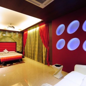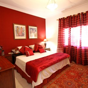 Beautiful romantic bedroom for couples red wall design idea with red and white curtains