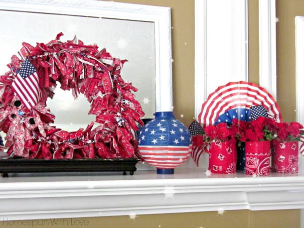 red-white-blue-fireplace-mantel-decoration-ideas-with-red-bandana-rag-wreath-with-american-flag-and-wire-star-garland-bandana-cover-can-flower-vases-and-hand-painted-stars-and-stripes-pattern-lantern by kari on June 16, 2016 in 0