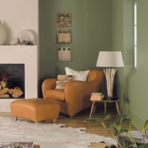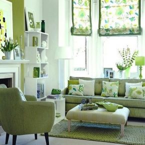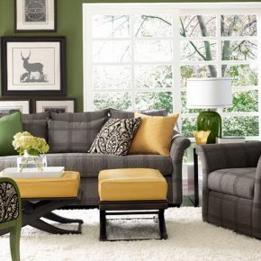 Sage yellow green living room with green furniture