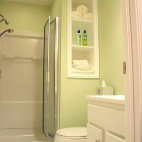 Small bathroom decorating makeover idea with colored paint
