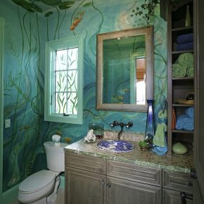 Small bathroom wall paint mural idea makeover