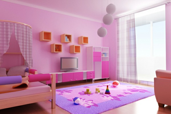 nursery-idea-pink-decoration-bed-shelves-carpet