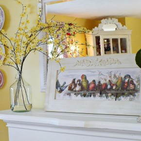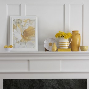 Yellow and white spring mantel decor