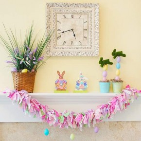 Easter and Spring Inspired Mantel with Fabric Garland