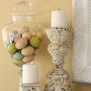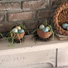 Fun Easter Eggs on Spring Mantel