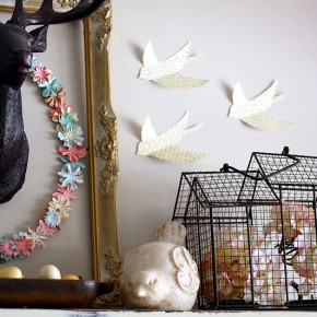 Very fun spring mantel with wall decor