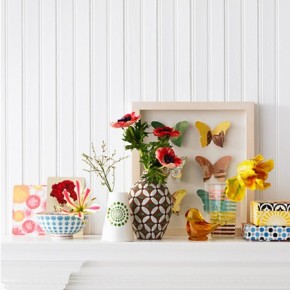 Fun colorful spring mantel with butterflies and flowers