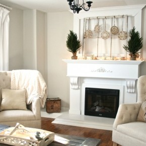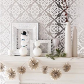Winter mantel interior design with snowflake banner