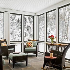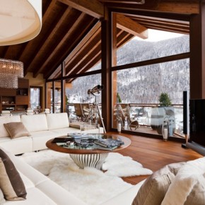 Wood winter home with white furniture