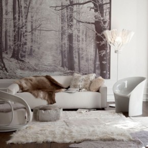Romantic cozy winter room with winter mural