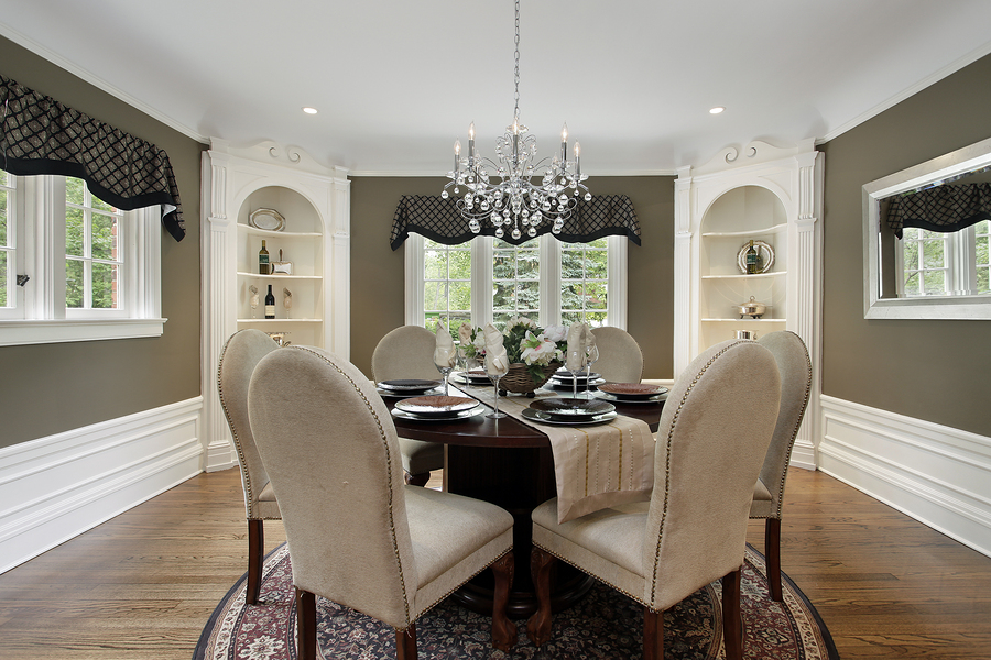 Dining room in luxury home white cabinetry