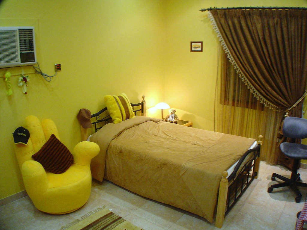 elegant-yellow-paint-color-for-bedroom-with-classic-and-iron-black-headboard-also-brown-fabric-curtain-antique-hand-chair-colour-wall-rooms-dark-walls-decor-painting by kari on March 20, 2018 in 0