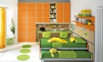 Just look at the color for the child room, green twin bed room, orange bed, white cupboard, blue cupboard,red stripes carpet, yellow table, that’s so many ideas design for children room. Lets enjoyed the design ideas below.