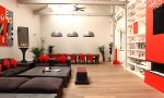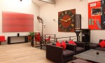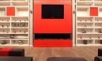 This home is really complete, equipped with a full home theater with a red sofa and pillows are very comfortable to be enjoyed by watching movies.