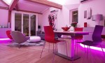 It all started on a September night in 2009, when we all settled up there, on the roof, or at least what remained of it. The building had been through a major fire a year before. The scene was set. The outlook of this area turned really fast into a crazy challenge: design and achieve a shell-free space with – as reference marks- only half-burned out staircases -leading to the lower level-, a huge scaffolding structure used as a roof, and a 360° view over Paris. The client wanted something new, ambitious and creative, in order to turn over a new leaf after 10 years spent at the loft. Both concerned about the quality of implementation and about the layout and fitting details, he enabled us to make a true fulfilling experience out of this project. Not a single inch was missed out, the goal was to conceive an open and welcoming space with as much stowage as possible, while allowing a comfortable circulation. We came up pretty quickly with the idea of a quiet and relaxing place during the day switching to a genuine place of mystery and pleasure at night. The dream came true 18 months later, on December 31st, and the leaf naturally turned over. A space where the filtered, aimed, tamed light designs the volume. Straight or slanting, geometrically random at times, the work of lines highlights every detail. The loft, a filled with emotions project, combining complexity, simplicity and lightness.