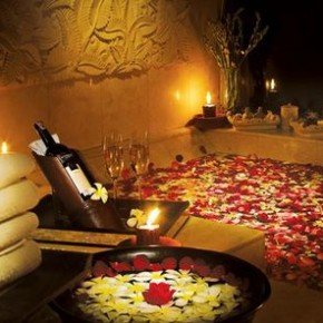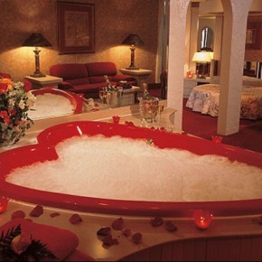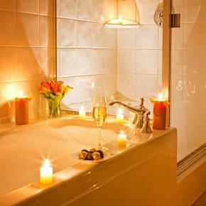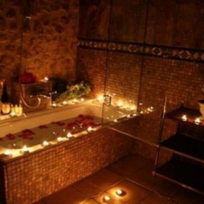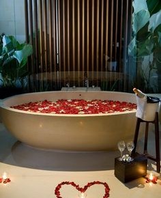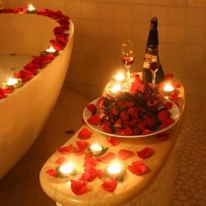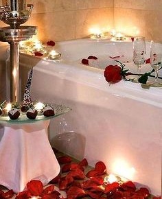 Sweet Valentine’s day decor for the bathtub and bathroom for two