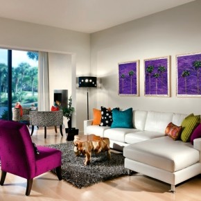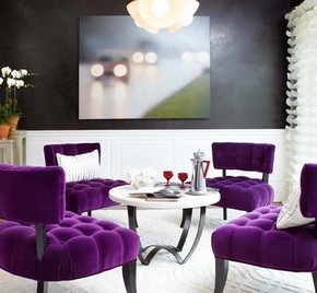 Contemporary living room design idea for spring with purple chairs