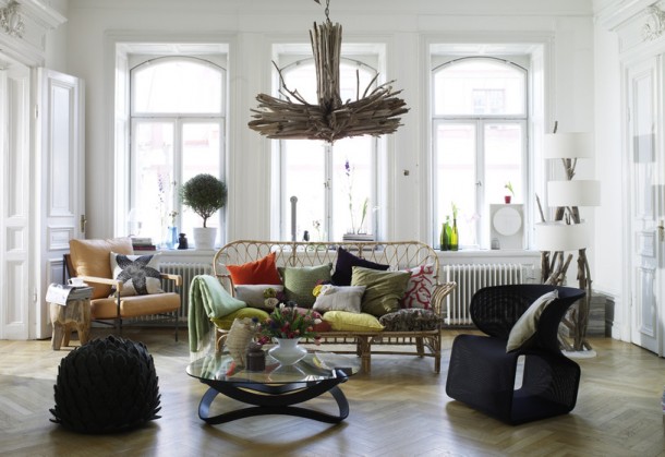 Splashes of colour in white interiors Photo 11 timber light feature | Swedish designer Sara Sjögren creates a playful and lively atmosphere in her interiors by using splashes of colour on a primarily white background. She uses a variety of different shapes which when interspersed with colour make the interiors quite exciting to be in