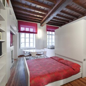 Did you know that a small apartment is not always bad. Try to see some pictures below, you must be amazed at how the designers are very creative. Hidden bed, wood floors and white walls is dominated blend a beautiful pink color. Wooden ceiling adds to the impression of the apartment therapy.